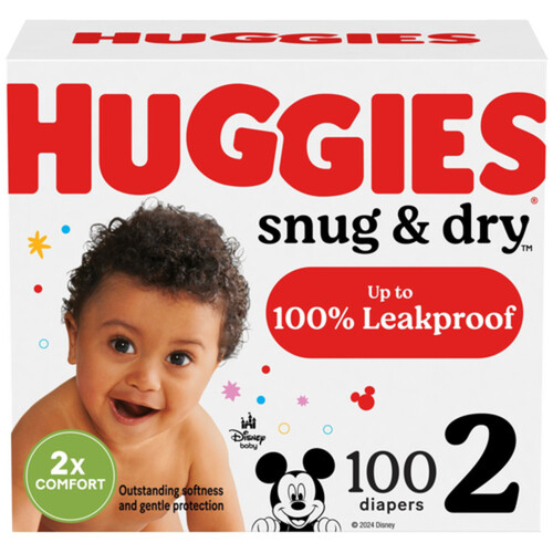 Keep your baby dry and comfortable with Huggies Snug & Dry Diapers, Size 2. Designed for infants weighing 12-18 lbs (5-8 kg), these diapers provide up to 12 hours of long-lasting protection. With their unique Leak Lock System, they quickly absorb moisture to keep your baby’s skin dry and healthy. The quilted liner ensures a snug fit while allowing airflow to prevent rashes. The stretchable waistband and fasten-anywhere tabs offer a secure and customizable fit, perfect for active babies. Each pack contains 100 diapers, providing reliable protection and comfort for your little one.